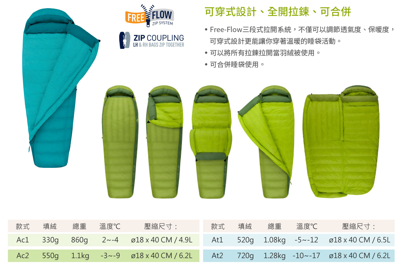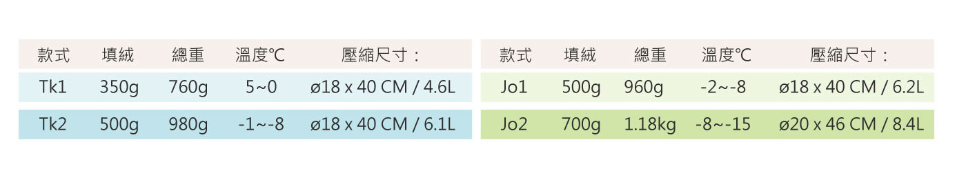 防潑水羽絨睡袋(輕)