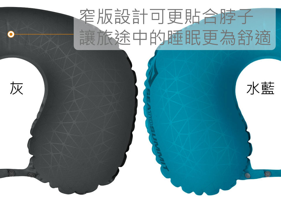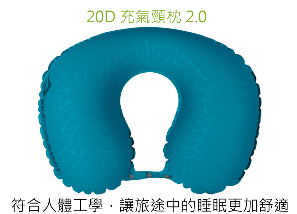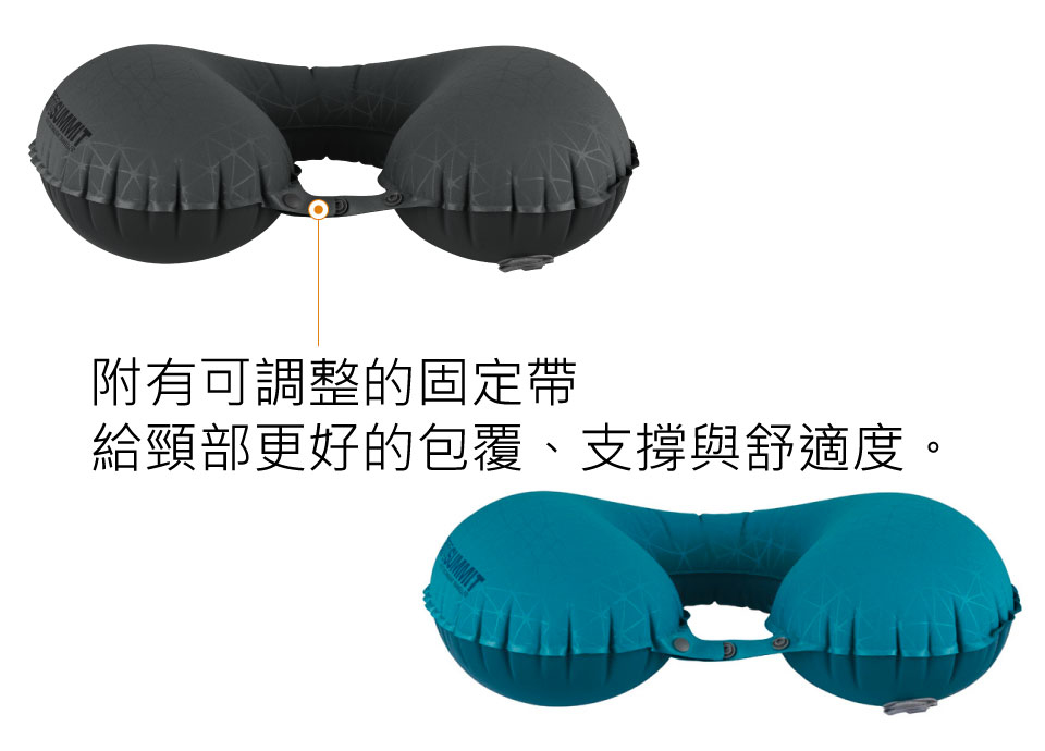 全新改版的20D 充氣頸枕,附有可調整的固定帶,給頸部更好的包覆、支撐與舒適度。固定帶使用20丹尼彈性針織布料,以不增加過多的布料來做固定,並保有舒適與柔軟度;透過3段扣環做調整,擁有2種長度可做搭配;此固定帶是直接縫附於頸枕上。