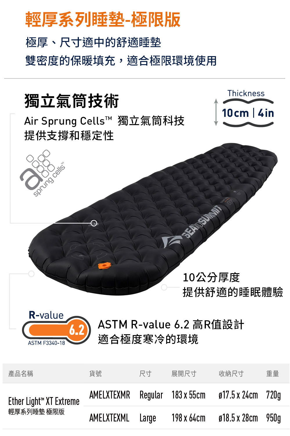Sea to Summit 輕厚系列睡墊-極限版 (R、L) 黑 (充氣袋,維修貼,枕貼)