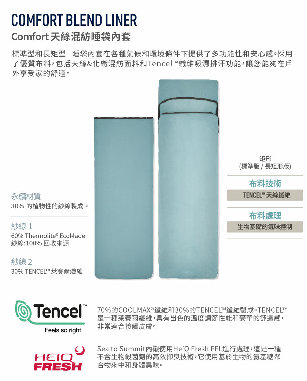 Sea to Summit Comfort 天絲混紡睡袋內套 -長方型-灰藍