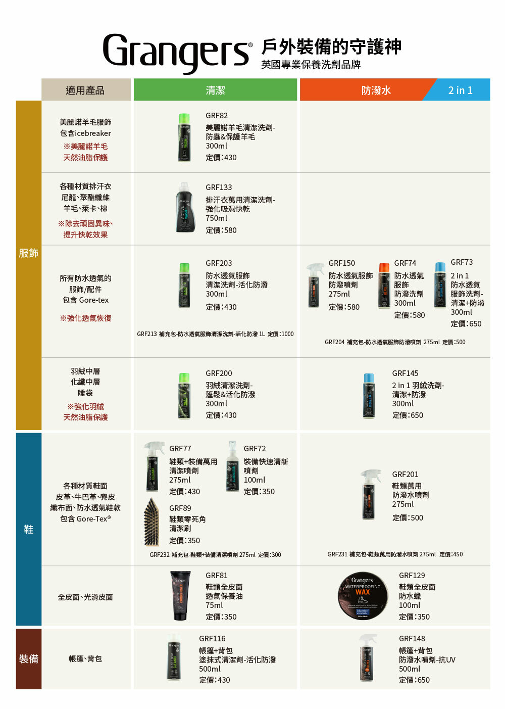 創立超過85年,經典防潑水與清潔洗劑專業品牌。獲英國軍方使用與人類首次登頂珠穆朗瑪峰使用品牌。全球首位獲得bluesign認證的洗劑品牌,從生產原料、生產過程、化學成分、都通過嚴格的環保標準。工廠獲得ISO9001 & 140001標準認證,在製程品質的確保和環境保護都得到保證。100%海洋廢棄塑料再製瓶子包裝,補充包設計,積極減少廢棄物。水性產品,不含PFC(氟碳化合物),對環境與健康友善。深得戶外服飾領導品牌所使用。