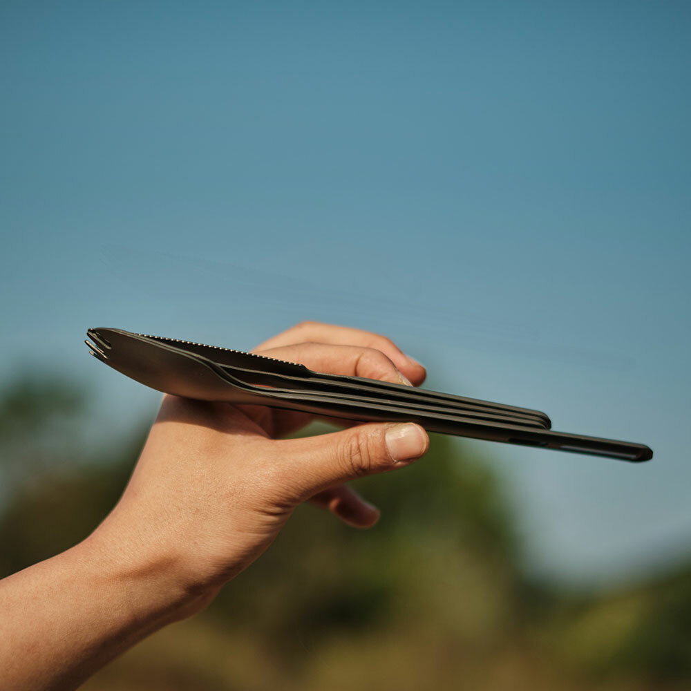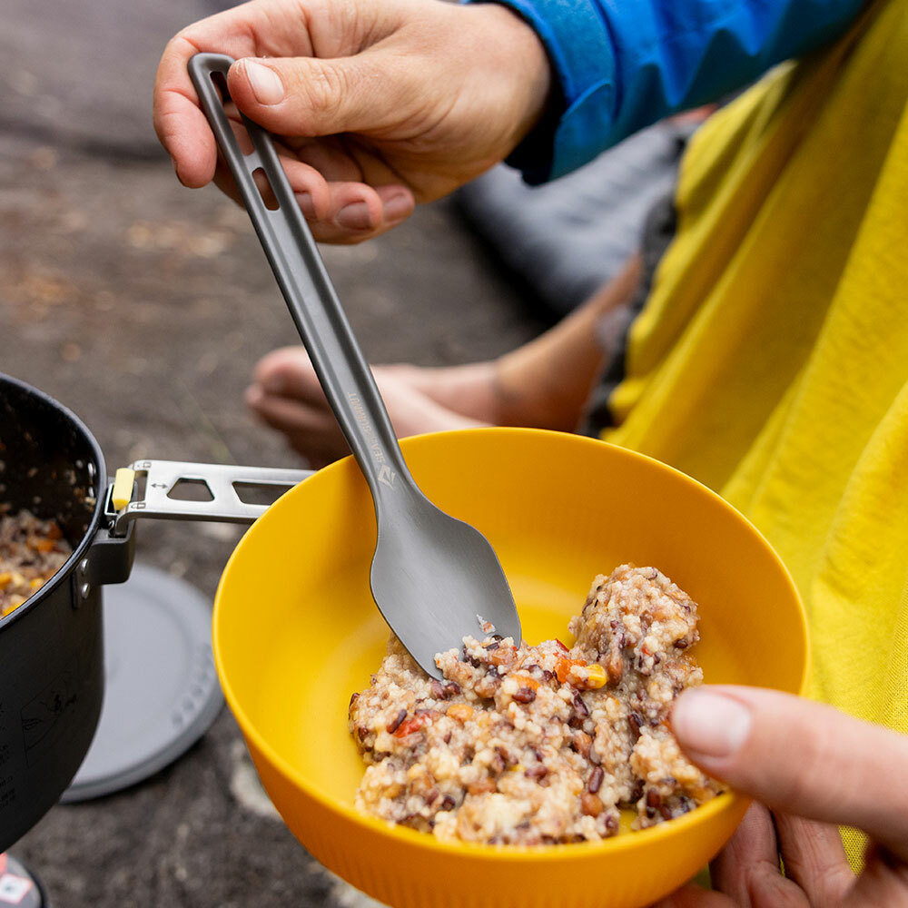 一套超輕且耐用的鋁製餐具套裝,包括長柄湯匙和湯叉組合。附件可以將套裝變成夾子。以效率和功能為重點,讓用餐時間變得順暢簡單。