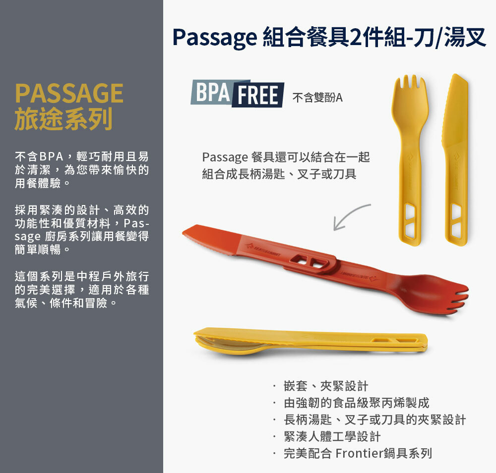 Sea to Summit Passage 組合餐具2件組-刀/湯叉 黃