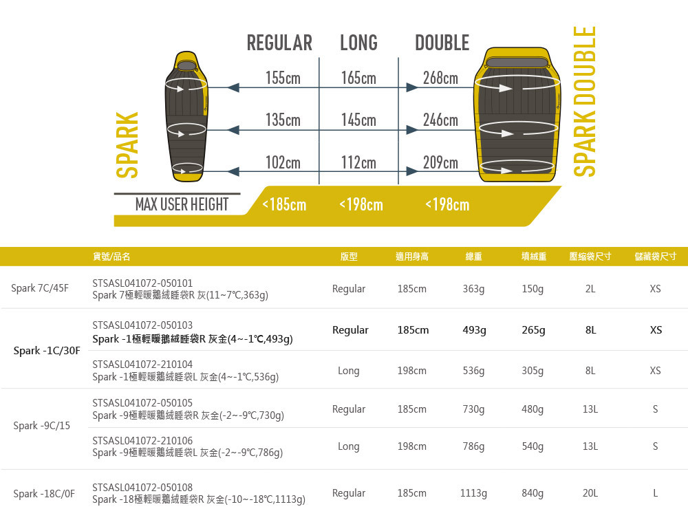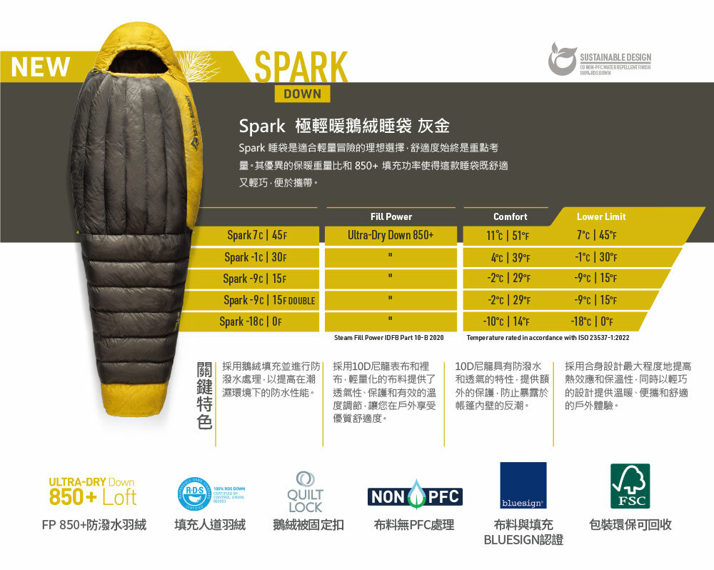 Sea to Summit Spark -1 極輕暖鵝絨睡袋R 灰金(4~-1℃,493g)