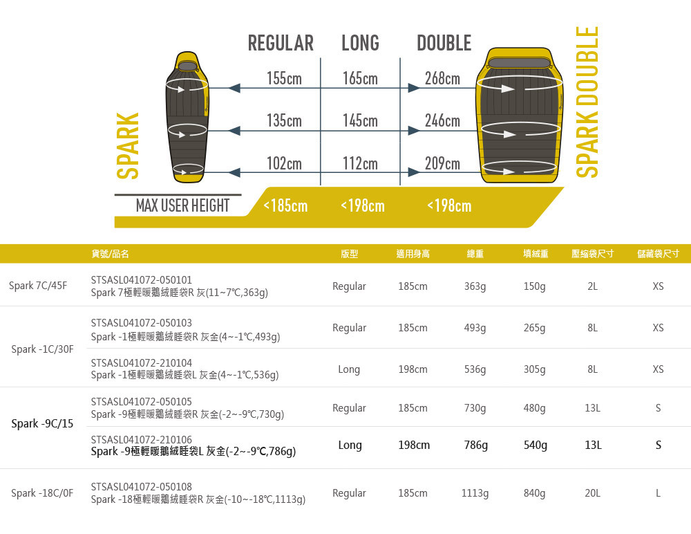 Sea to Summit Spark -9 極輕暖鵝絨睡袋L 灰金(-2~-9℃,786g)