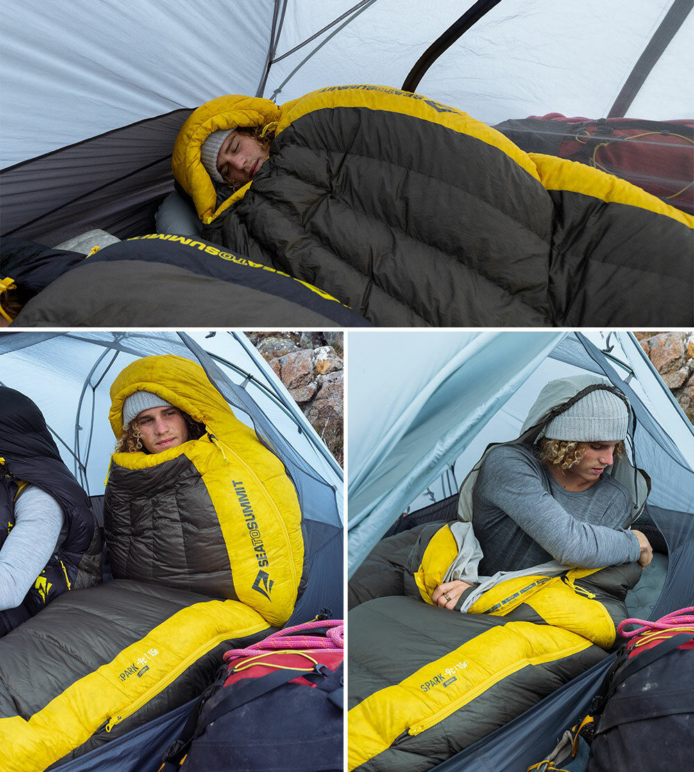 Spark 睡袋是適合輕量冒險的理想選擇,舒適度始終是重點考量。其優異的保暖重量比和 850+ 填充功率使得這款睡袋既舒適又輕巧,便於攜帶。