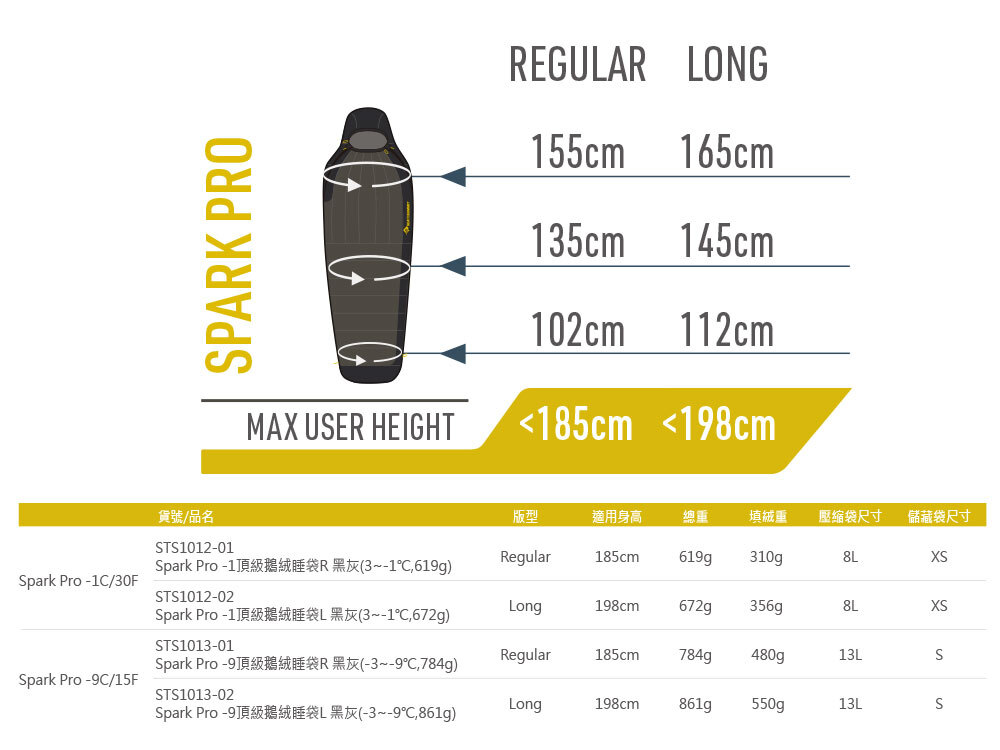 Sea to Summit Spark Pro -9 頂級鵝絨睡袋 L 黑灰 (-3 ~ -9℃,861g)
