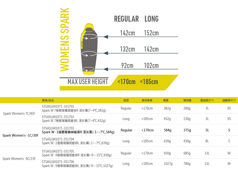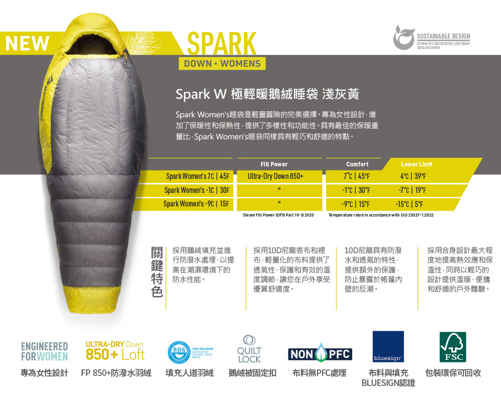 Sea to Summit Spark W -1 極輕暖鵝絨睡袋R 淺灰黃(-1~-7℃,584g)