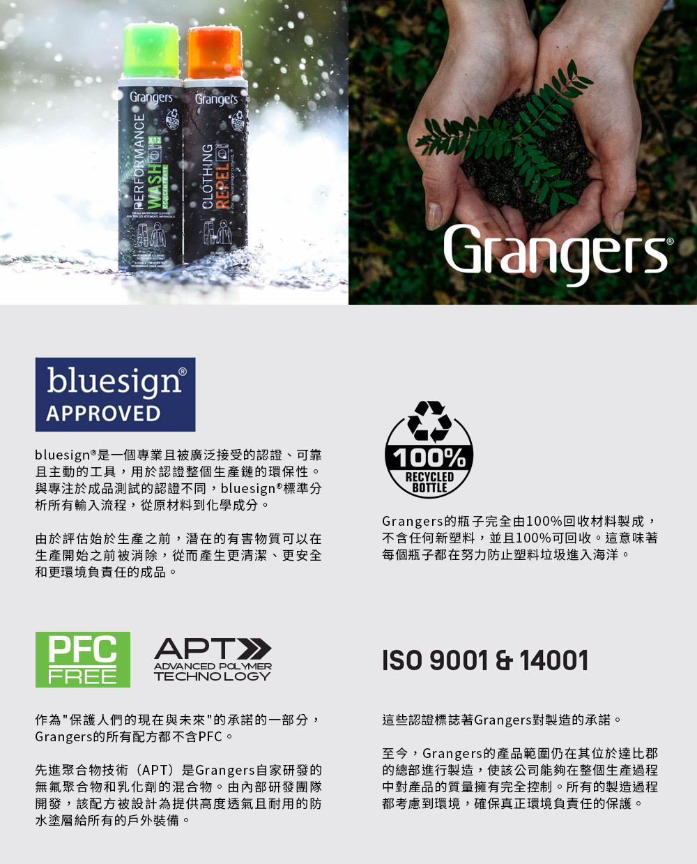 創立超過85年,經典防潑水與清潔洗劑專業品牌。獲英國軍方使用與人類首次登頂珠穆朗瑪峰使用品牌。全球首位獲得bluesign認證的洗劑品牌,從生產原料、生產過程、化學成分、都通過嚴格的環保標準。工廠獲得ISO9001 & 140001標準認證,在製程品質的確保和環境保護都得到保證。100%海洋廢棄塑料再製瓶子包裝,補充包設計,積極減少廢棄物。水性產品,不含PFC(氟碳化合物),對環境與健康友善。深得戶外服飾領導品牌所使用。