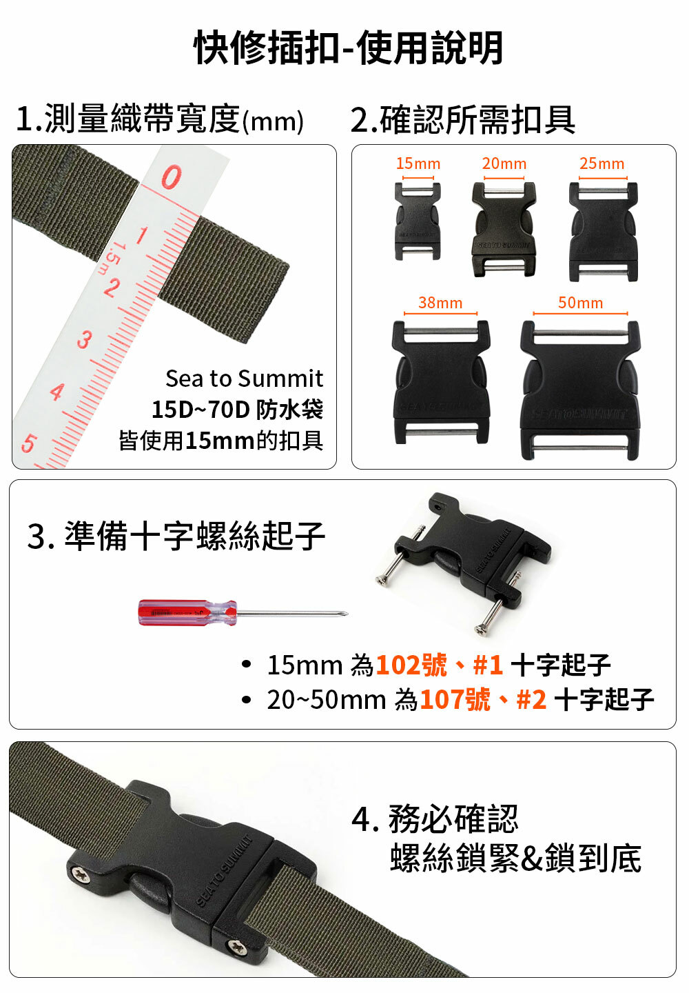 Sea to Summit 包(袋)類帶扣零件_快修日字扣-1pin/1止滑